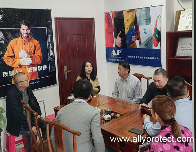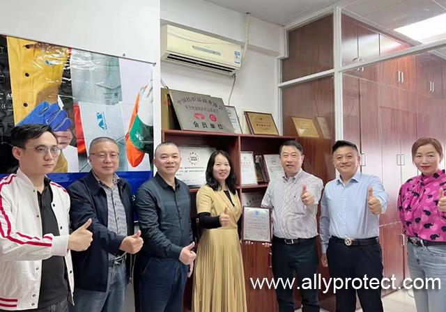 2022年3月4日,廣東省安全生產(chǎn)協(xié)會勞動防護分會會長李聲譽、秘書長祝平、副秘書長杜玉霜一行到達(dá)副會長單位——梧州市友盟焊接防護用品有限公司,受到了友盟總監(jiān)鄒暖春及公司各區(qū)域負(fù)責(zé)人的熱情接待。