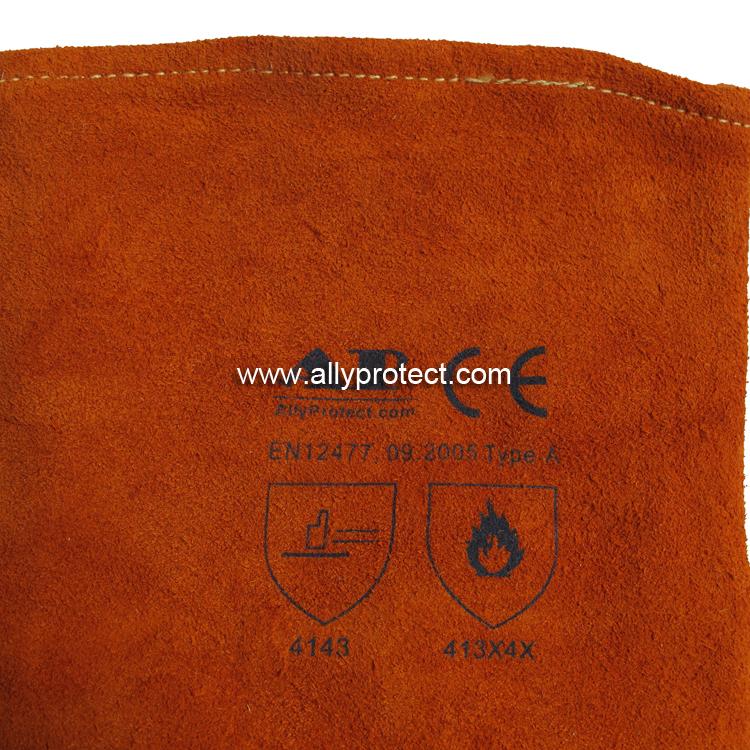 - 產(chǎn)品描述: [ AP ]銹橙色牛二層皮全皮電焊手套,直拇指護(hù)縫設(shè)計,適用于焊接、切割及搬運(yùn)等用途。