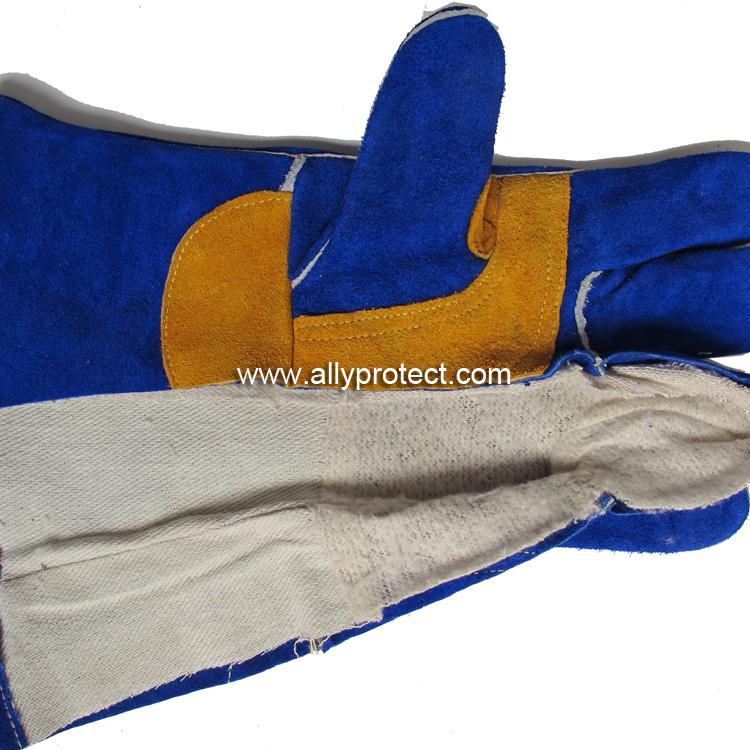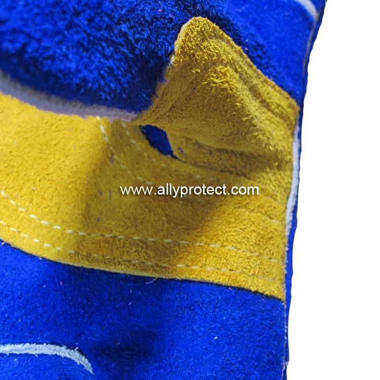 - 產(chǎn)品描述: [ AP ]彩藍色牛二層皮全皮電焊手套,斜拇指、加寬護掌層和護腕設計,適用于焊接、切割及搬運等用途。