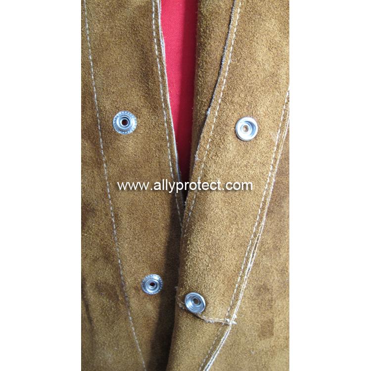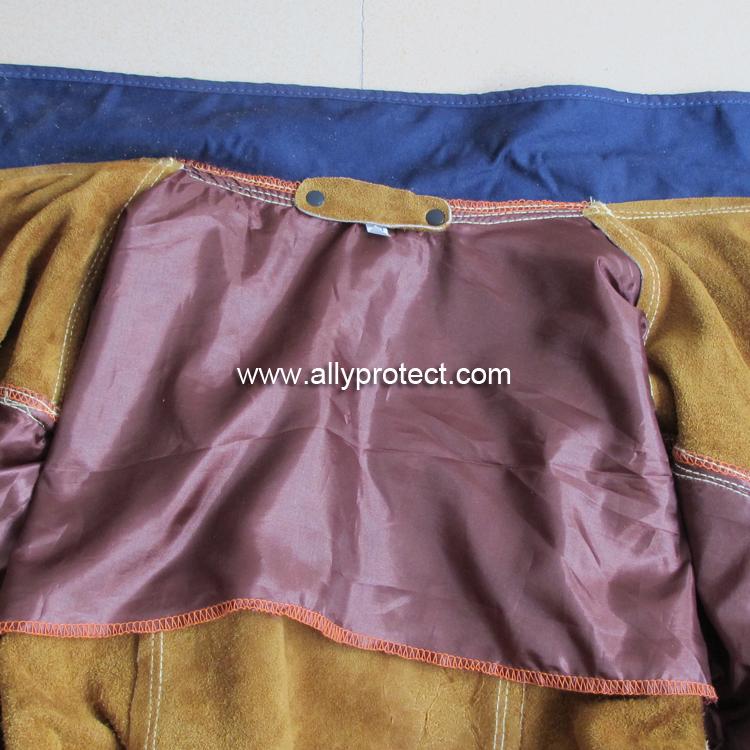 - 產(chǎn)品描述: 精選耐磨、柔韌的牛二層皮,由杜邦Kevlar?防火線雙線縫制而成。緞面料肩部?jī)?nèi)里,便于穿戴。 立領(lǐng)安全設(shè)計(jì)。適用于高強(qiáng)度焊接,抵擋電焊火花飛濺,降低電焊輻射對(duì)皮膚的傷害,保護(hù)作業(yè)安全。